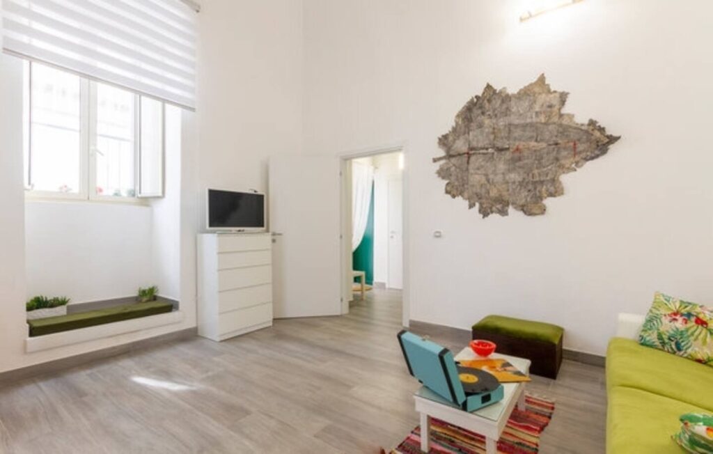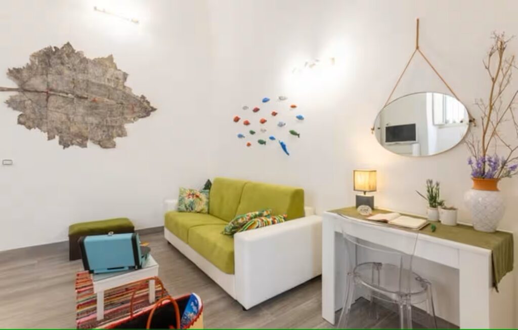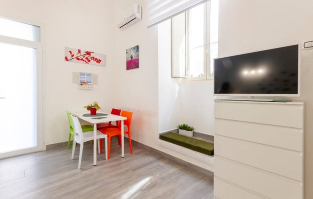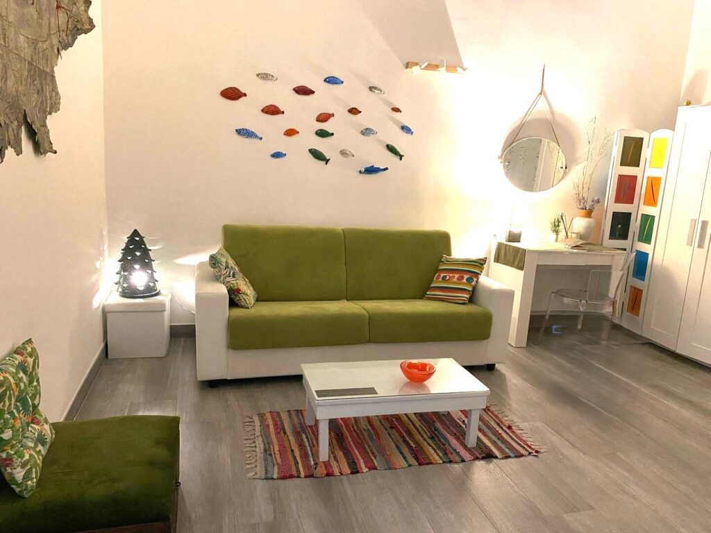 Situato al piano terra di un edificio tranquillo, l’appartamento offre un ingresso indipendente che garantisce privacy e libertà d’accesso. Un ambiente curato e luminoso. L’ingresso si apre su un pratico angolo cottura attrezzato, perfetto per chi ama preparare i propri pasti anche in vacanza. Il soggiorno, ampio e arredato con stile, ospita un comodo divano letto matrimoniale ed è impreziosito da una splendida volta a botte, dettaglio architettonico che dona un’atmosfera calda e autentica all’intero spazio. La zona notte, raccolta e riservata, si sviluppa su un soppalco raggiungibile tramite una scala dall’ingresso: un angolo intimo pensato per garantire massimo relax. Il bagno, moderno e ben rifinito, è dotato di tutti i comfort essenziali. La connessione Wi-Fi veloce, l’aria condizionata e la TV a schermo piatto assicurano ogni comodità sia per il tempo libero che per eventuali esigenze di lavoro. Apprezzato da coppie, turisti o viaggiatori in transito che desiderano sentirsi subito a casa, immersi nella vivacità di Bisceglie ma con il privilegio di uno spazio raccolto per un soggiorno piacevole e rilassante.